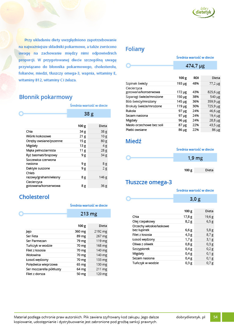 Dodatkowo do opracowanego planu dietetycznego otrzymasz atrakcyjnie przygotowane ciekawostki i wiadomości żywieniowe, które mam nadzieję pozwolą Ci zrozumieć wiele spraw związanych z nurtującym Cię problemem, a także przyczynią się do zwiększenia ogólnej wiedzy żywieniowej.
